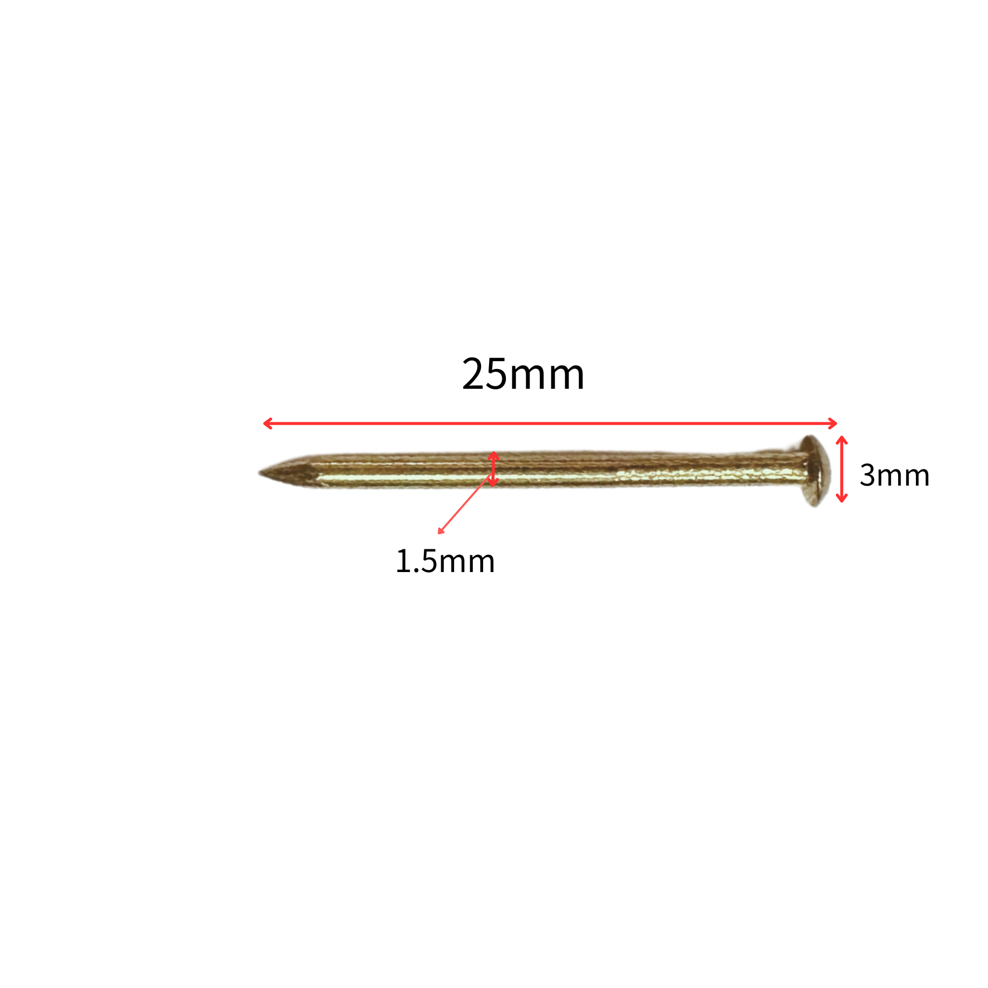 銅釘 半圓頭 25mm- 黃銅- YN625BZ
