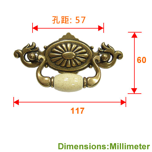 鷹把手 陶瓷菊 孔距 57 mm – 亮青古銅色 HD117BK