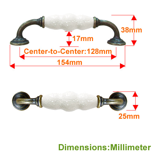 J型 白冰裂 白色 孔距 128mm 陶瓷把手- 青古銅色座 HJ358BKWM