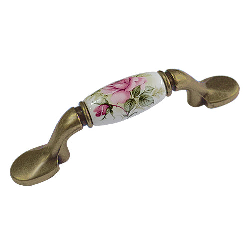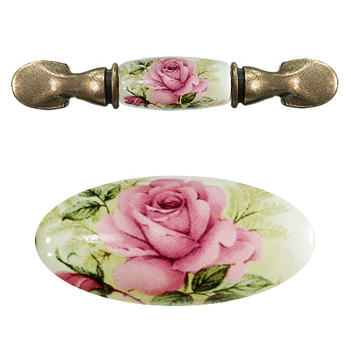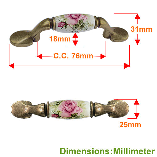 M型 鄉村風玫瑰 白底 孔距 76mm 陶瓷把手- 青古銅色座 HM821BKWH